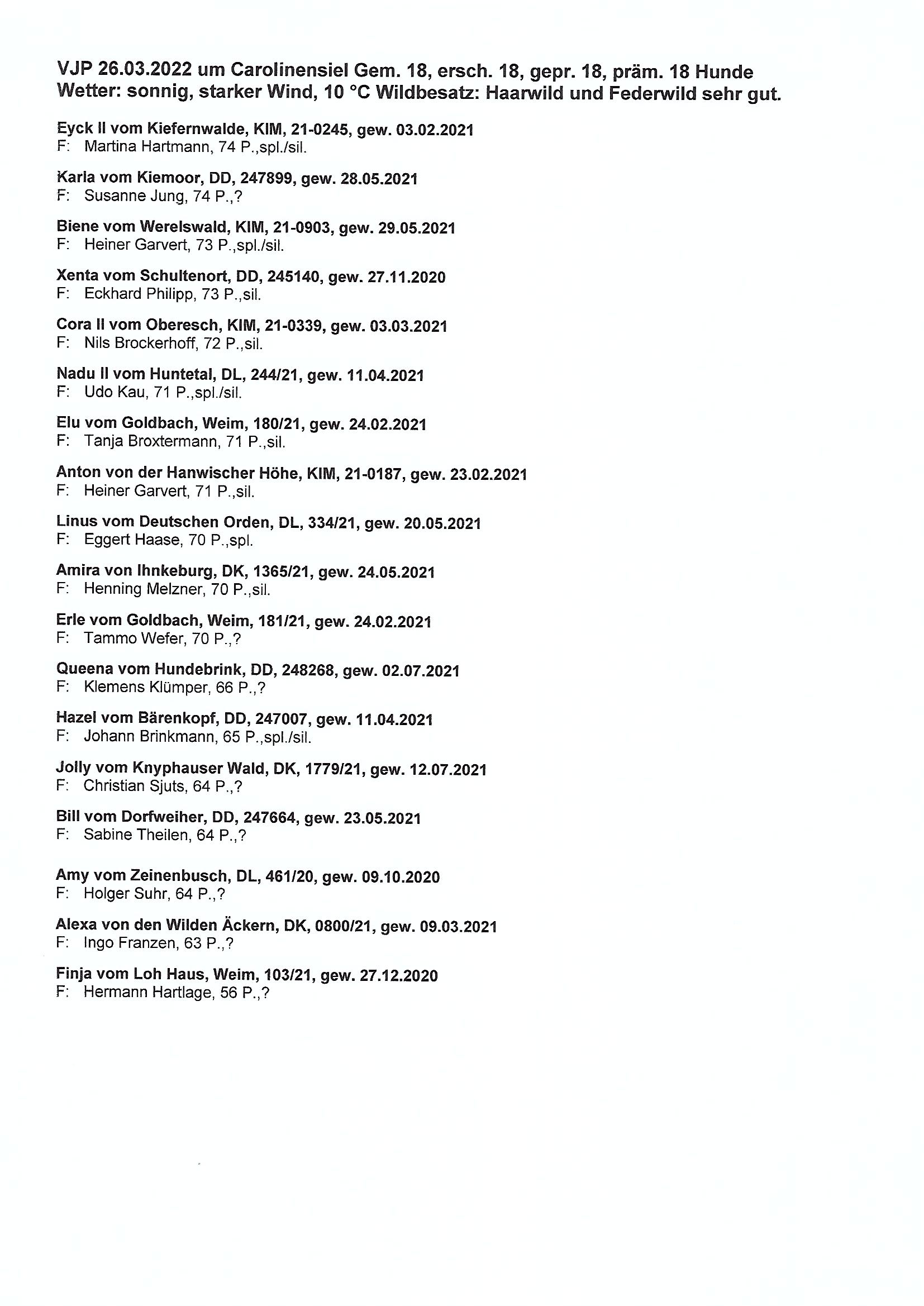 HZP-Rangliste 24.09.2022 in Huntlosen